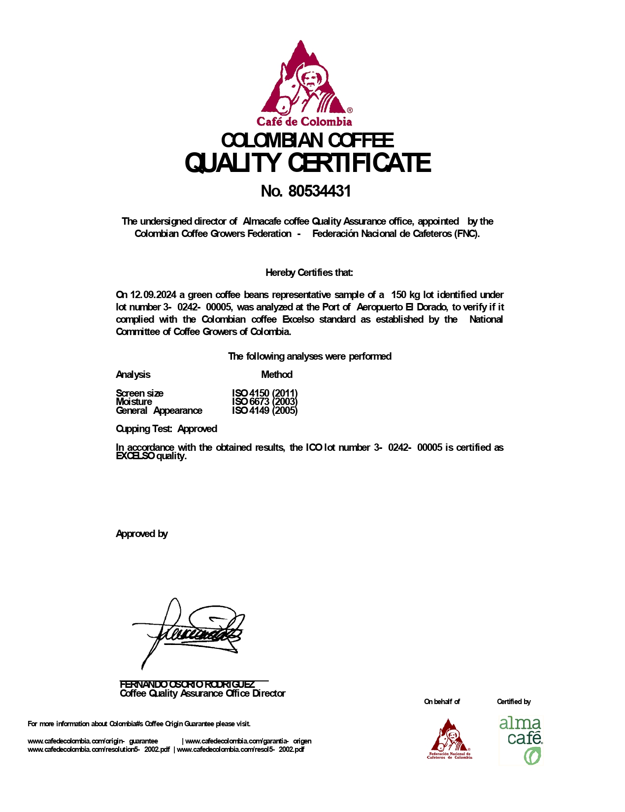 Café orgánico de las falderas del Parque Nacional Tatamá Fragancia a caramelo, chocolate, cítricos, aroma a floral, sabor, chocolate, panela, lima, acidez cítrica viva, cuerpo denso, residual a caramelo y chocolate perdurable. |
